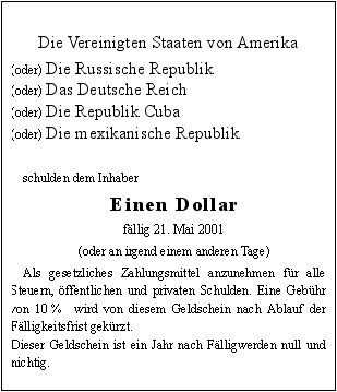Dieser Geldschein ist ein Jahr nach Fälligkeit null und nichtig.Dieser Text als PDF zum Drucken