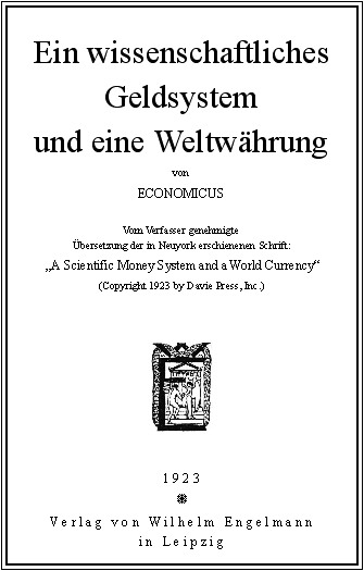 Diese Abhandlung über ein wissenschaftliches Geldsystem widme ich Männern, die in wirtschaftlichen Fragen selbständig denken; sie werden in dieser Schrift eine Lösung für die gegenwärtigen Wirren im Geldwesen finden.